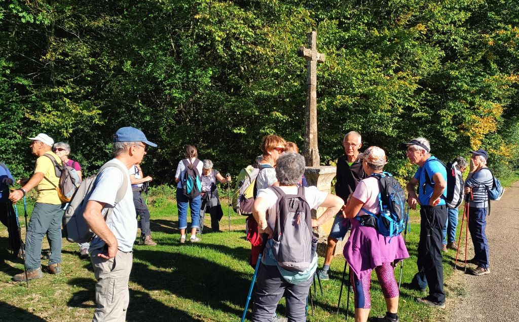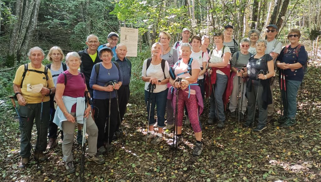 Le trajet fut un vrai plaisir : chemins agréables, soleil complice, et même un petit pont de béton sur notre route — attention, pas le petit pont de bois( d’Yves Duteil )cette fois-ci, on monte en gamme !En chemin nous sommes passé devant la fontaine de font dolent »la source qui souffre qui pleure« qui selon la légende serait que l’eau de la source aurais des pouvoirs thérapeutique puisque son eau était réputée soigner les maladies de peau et les plaies, les troubles de l’estomac et les indigestions. Elle avait aussi des vertus de fécondité.