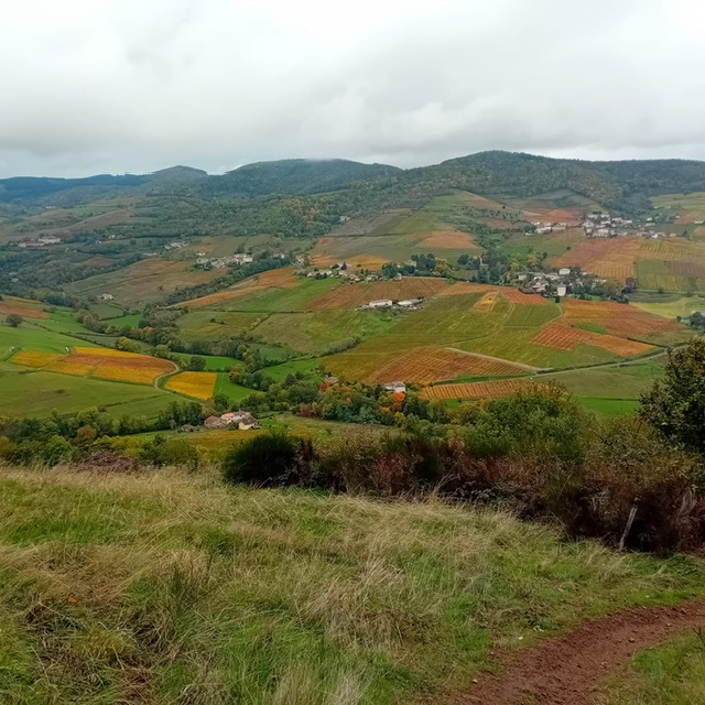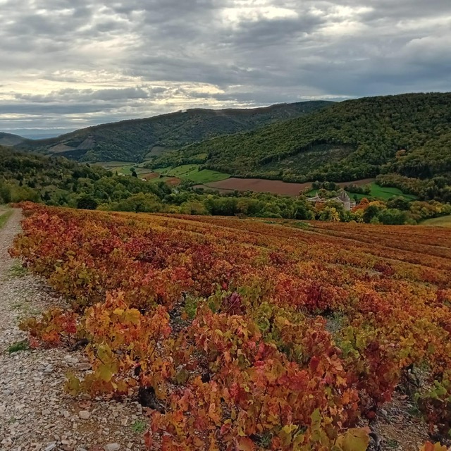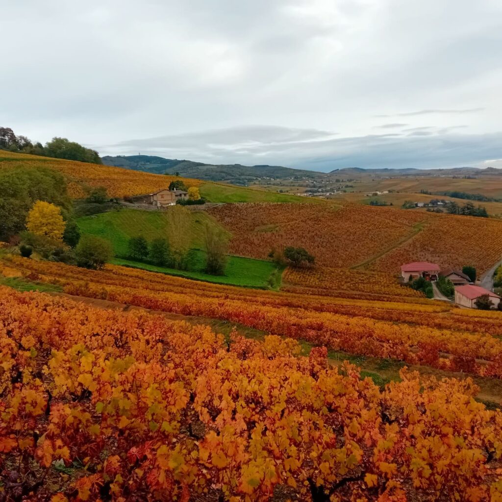 Le temps est doux, le ciel chargé, et déjà dans les premières lueurs du jour, les couleurs chatoyantes des vignes nous émerveillent.