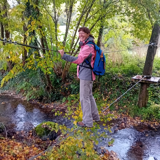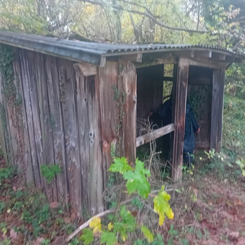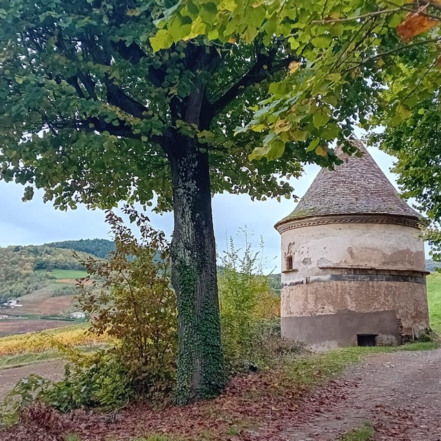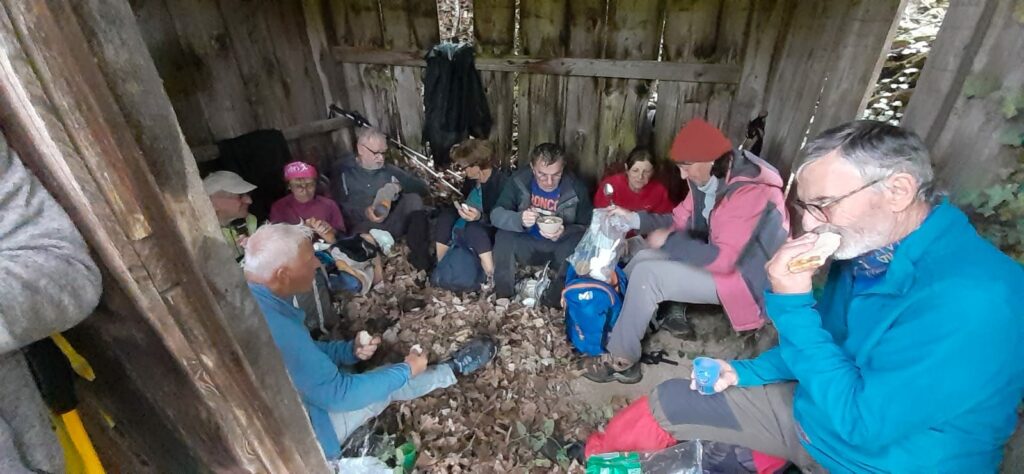 À la mi-journée, une belle averse nous contraint à enfiler les capes, mais notre bonne étoile veille sur nous : nous trouvons, au moment du repas, un abri salutaire pour déjeuner bien au sec et au chaud.