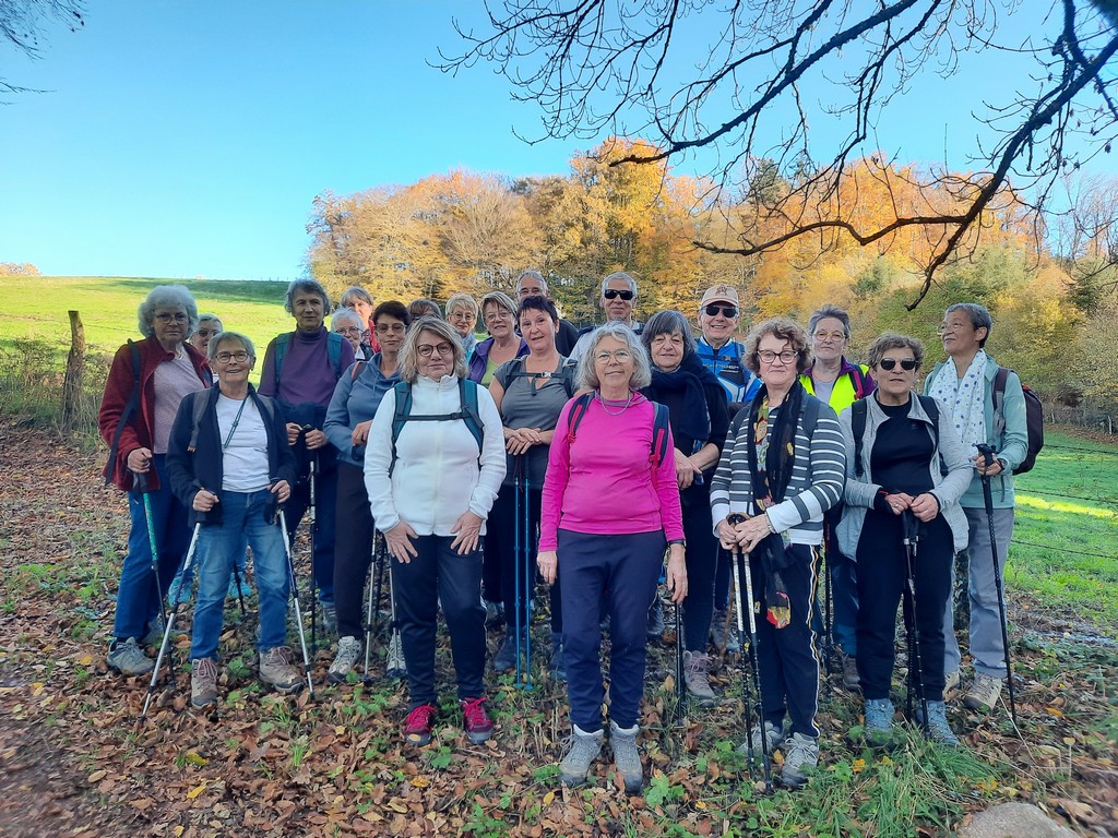 Mardi 4 novembre, nous étions 22 pour découvrir les sentiers, occasionnellement bien humides, de Chassigny-Sous-Dun. 6,9km et un dénivelé de 201m, dénivelé qui s’est de temps à autre fait sentir dans les mollets !