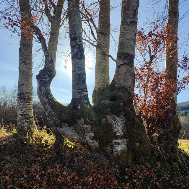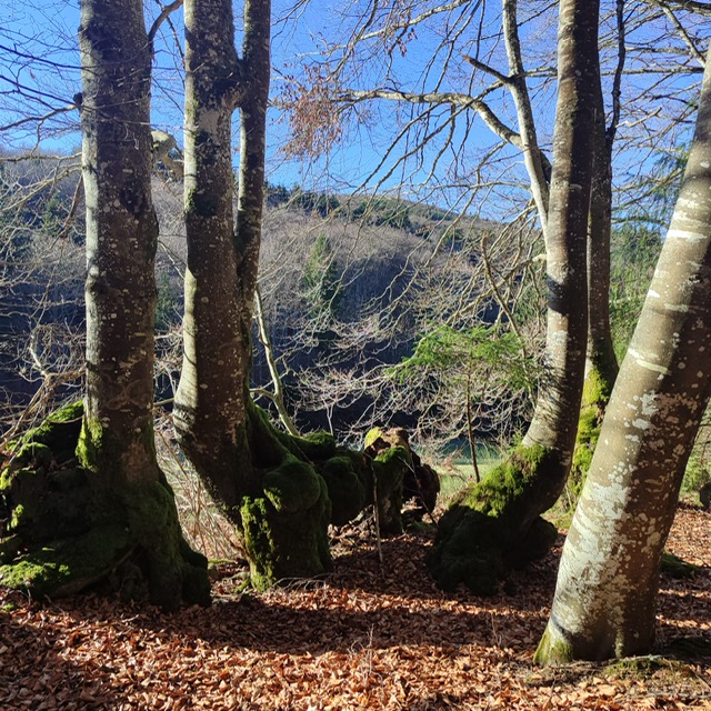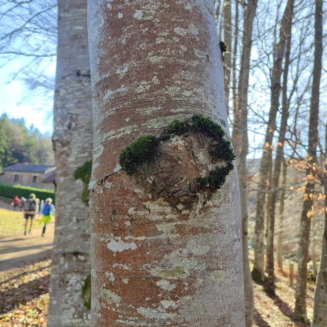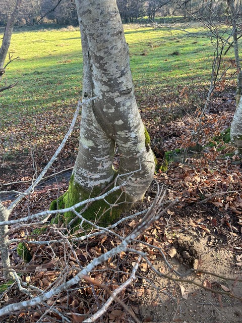 Nous avons pu découvrir de vrais trésors d’art sculptural comme ces hêtres remarquables ou une “baisure” … ( occasion pour nous de nous instruire dans l’hilarité générale causée par les explications de Pascal notre spécialiste des arbres 😂).