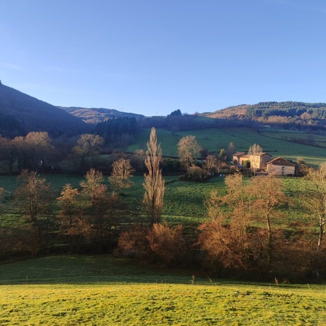 Au milieu de la forêt de Bécajat , illuminée de lumière…. une clairière ….qui allait grandement nous changer des bivouacs chez l’habitant avec vin chaud de ces dernières semaines !!!!