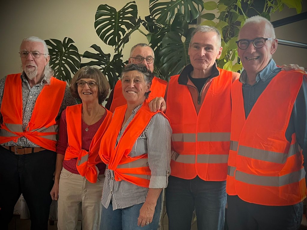 Notre président a offert aux animateurs un gilet orange à l’enseigne du GRS. A chacun sa façon de le porter !