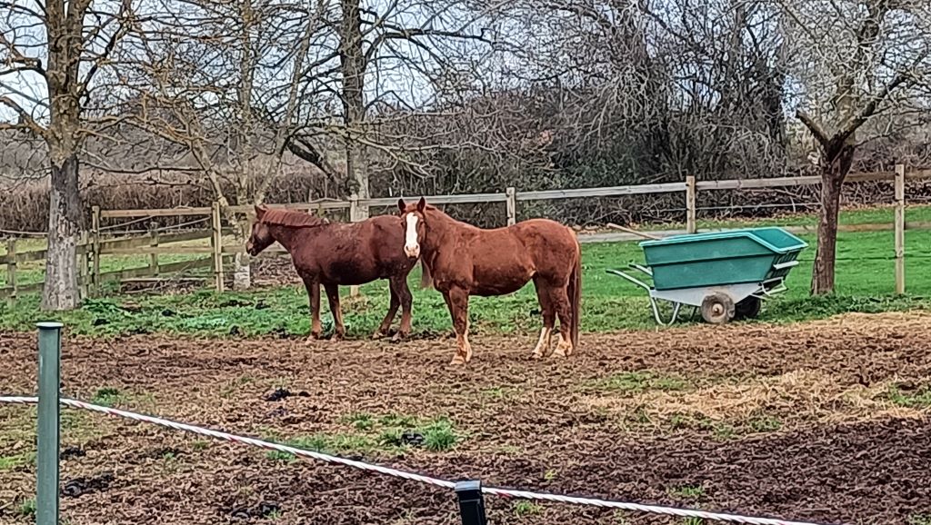 La pause salvatrice arriva près d’une maison, sous le regard attentif de deux équidés manifestement très curieux. Ils nous observaient nous sustenter avec une intensité laissant penser qu’ils évaluaient nos talents culinaires… ou notre état de fatigue.