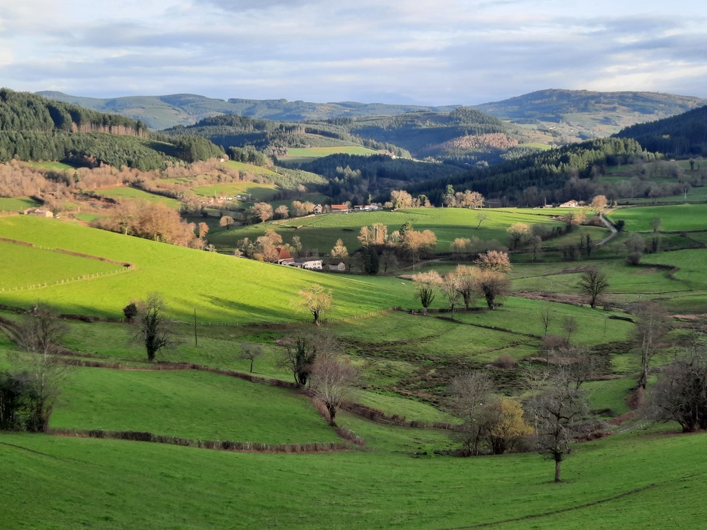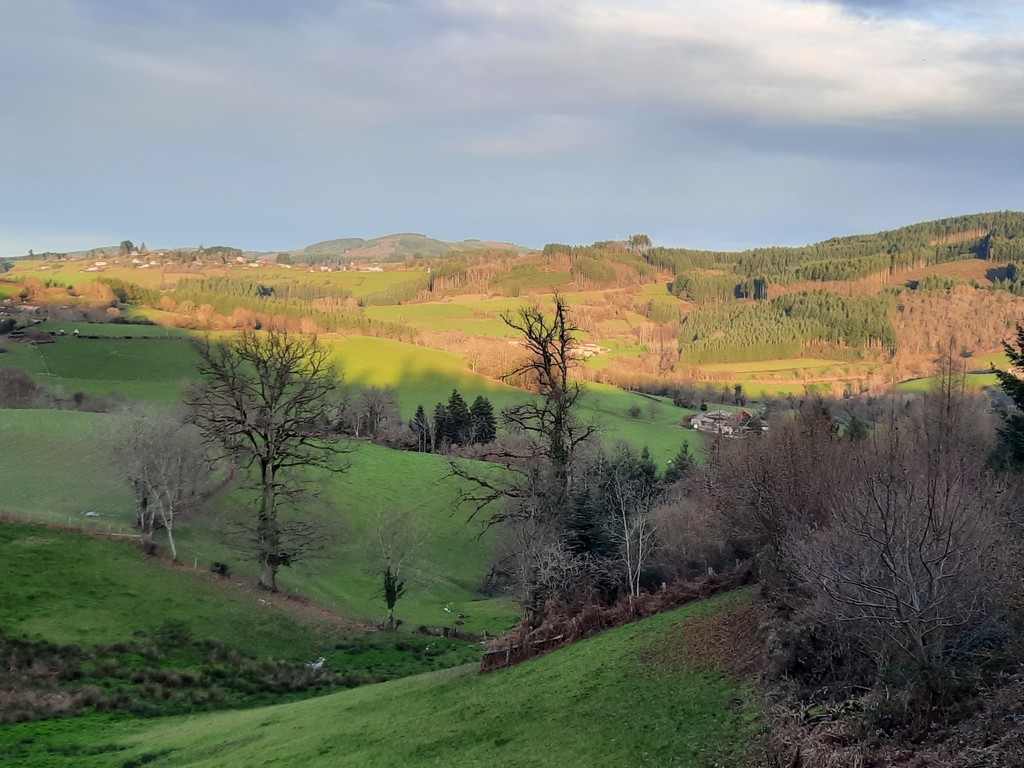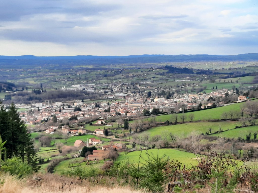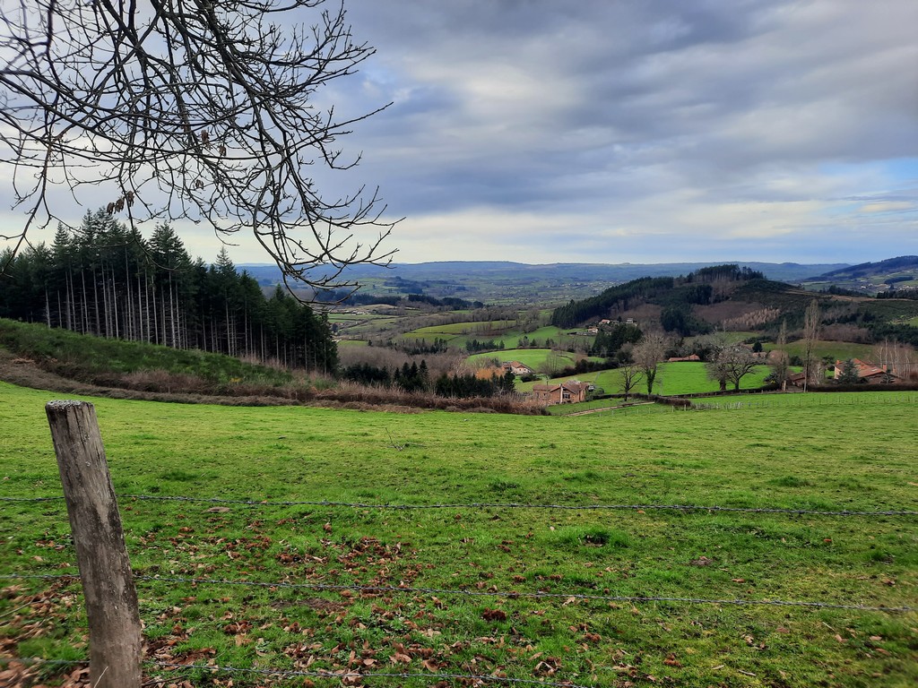 Malgré un temps couvert au départ de la randonnée, nous avons bénéficié de vues dégagées sur Chauffailles et les monts de la Madeleine dans le lointain.