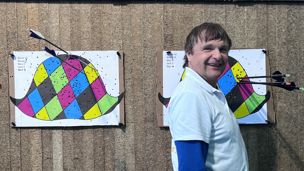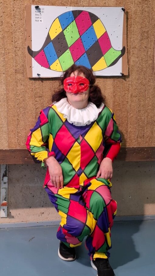 Une petite compétition amicale de 10 volées à eu lieu , en tirant sur des blasons en forme de chapeau d’Arlequin aux couleurs emblématiques de ce personnage.