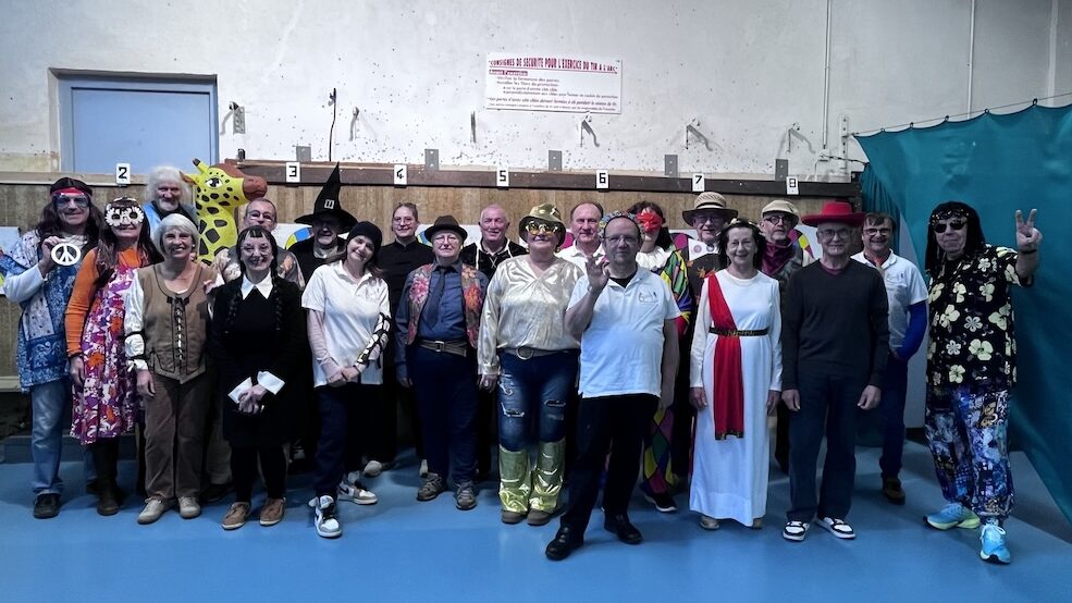 Ce samedi 28 février nous étions 22 archers déguisés de la tête aux pieds , chacun avait incarné son personnage préféré : super-héros, personnages historiques, personnages des années 80 , et même un animal : une girafe