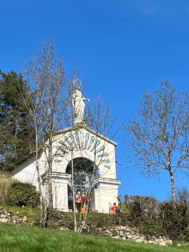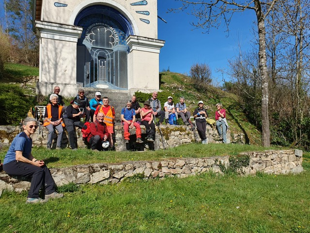 Partis à 10 de Chauffailles nous retrouvons ce mardi 17 mars huit autres adhérents de la marche soutenue GRS venant de Charlieu. C’est donc à 18 que nous avons démarré depuis le parking de la mairie de Lamure-sur-Azergues.