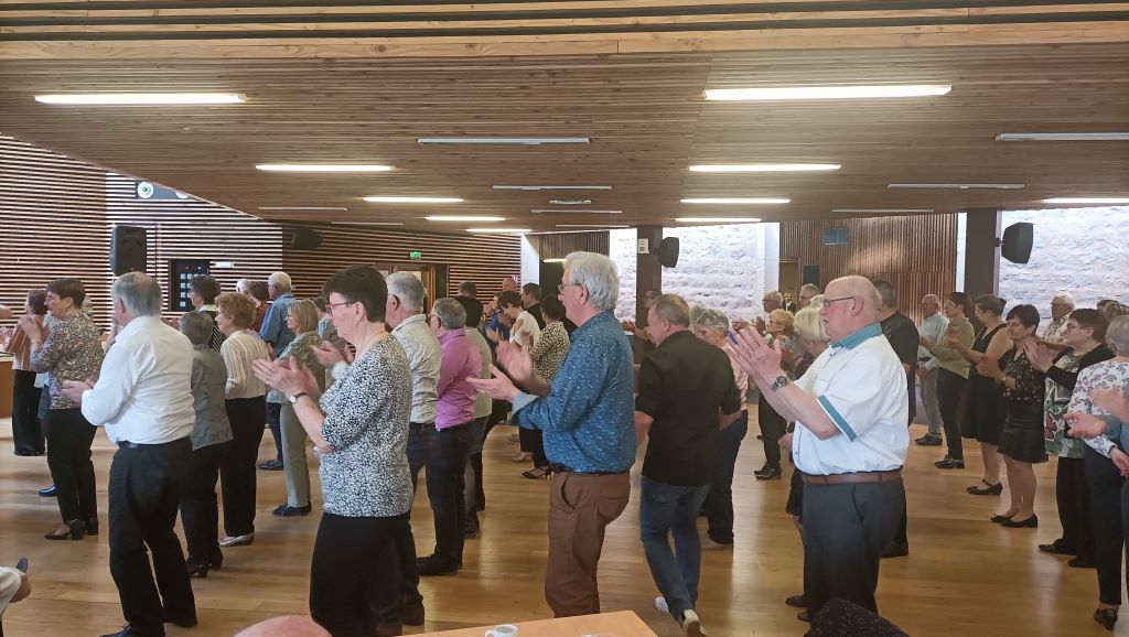 Aux commandes musicales, Aurélie et Jérôme Arnaud ont littéralement mis le feu (rassurez-vous, uniquement au parquet 😄). Entre tango, cha-cha-cha, valse, paso-doble et même un petit détour par les années 80, chacun y a trouvé son rythme… sans oublier les incontournables danses en ligne qui ont fait l’unanimité.