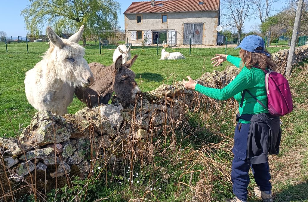 Mais le moment le plus marquant reste sans conteste la rencontre avec un groupe d’ânes, tranquillement allongés derrière un muret. En nous voyant arriver, ils se sont levés, intrigués… ou inquiets, difficile à dire.
