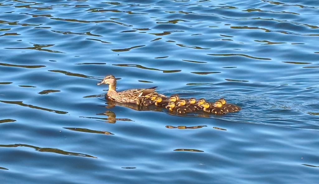 Sur le chemin du retour, surprise attendrissante : une maman cane accompagnée d’une bonne dizaine de canetons, bien organisés en file indienne, profitant de l’aspiration comme de vrais cyclistes du Tour de France 🚴♂️. Une belle leçon d’économie d’énergie !