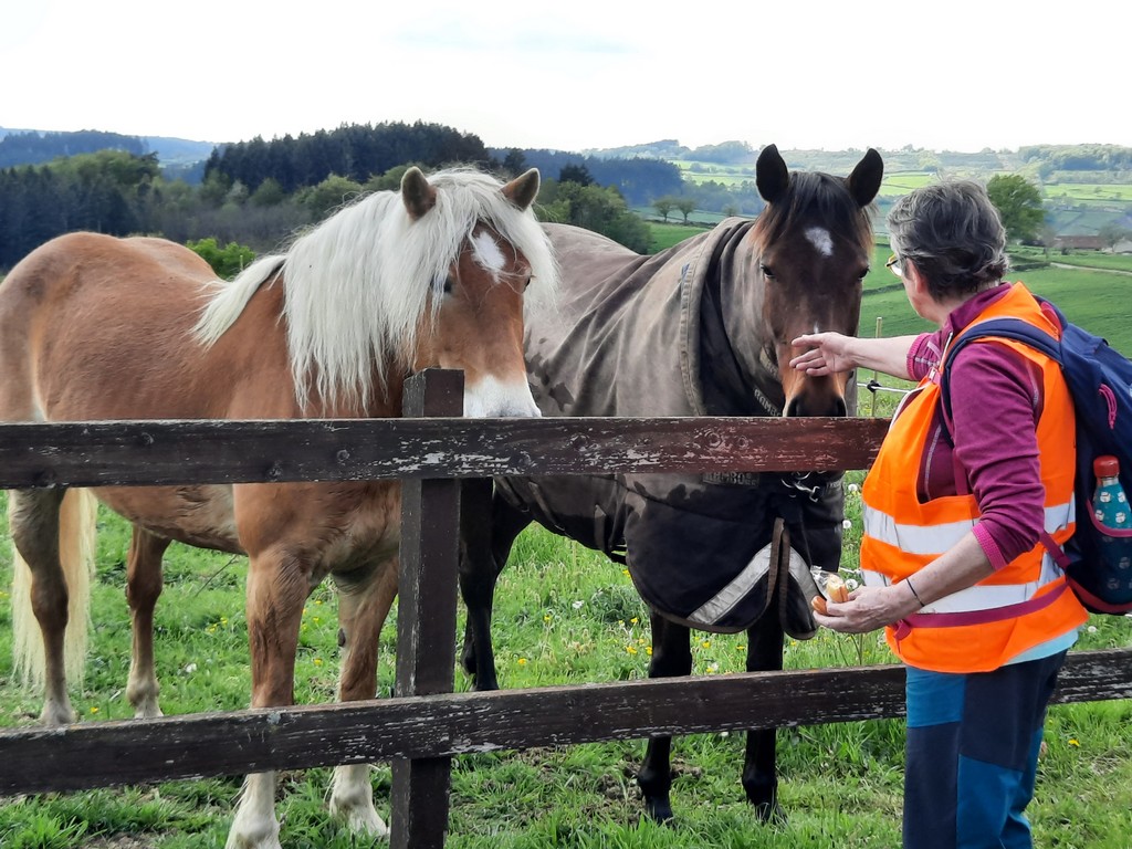 Il n’y a pas que des vaches, mais aussi un bon nombre de chevaux avides de caresses et peut-être d’un petit quelque chose à grignoter !