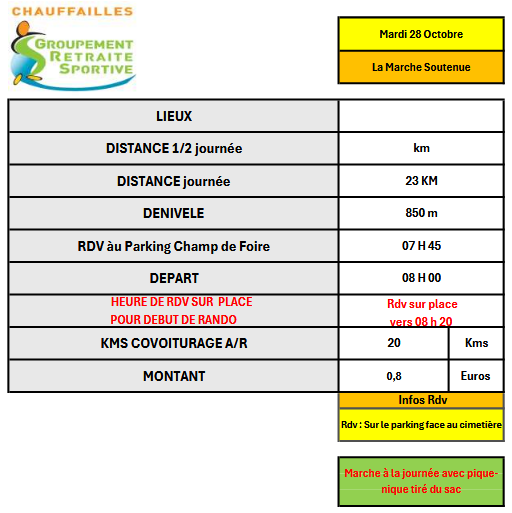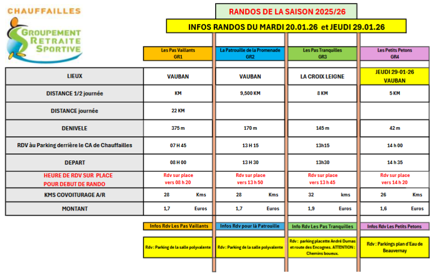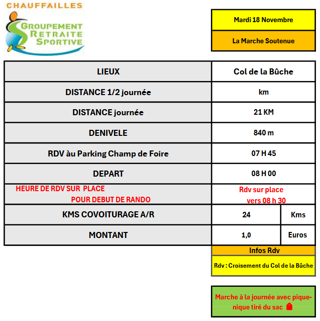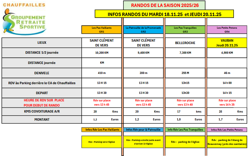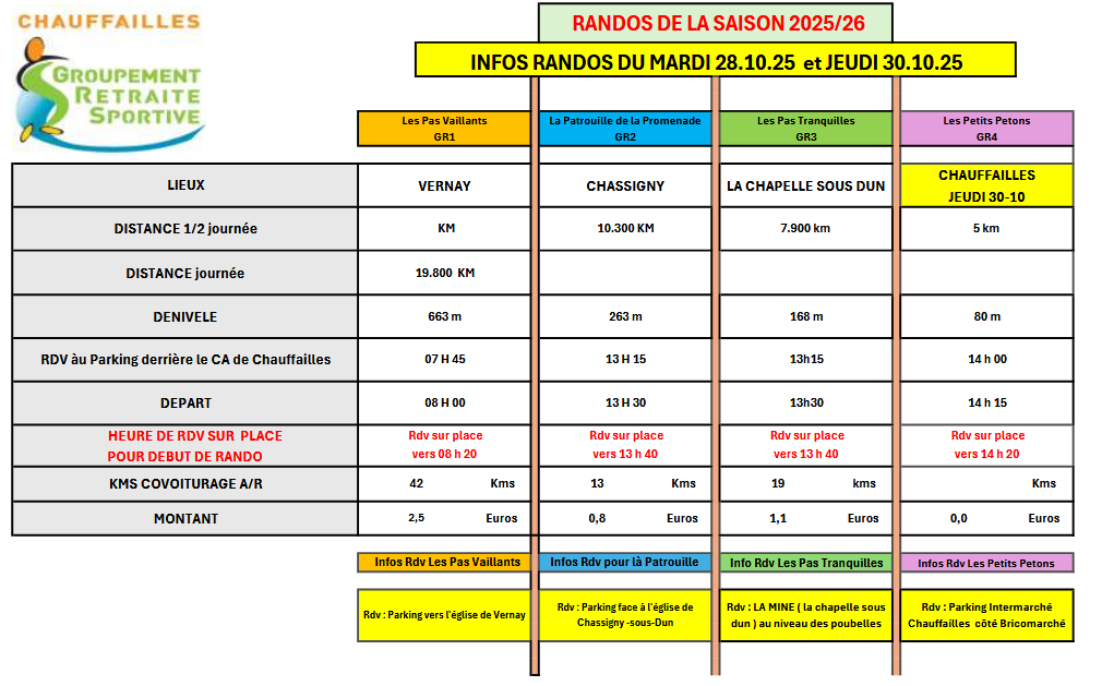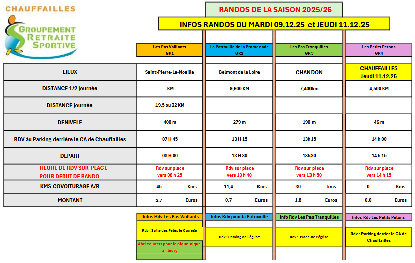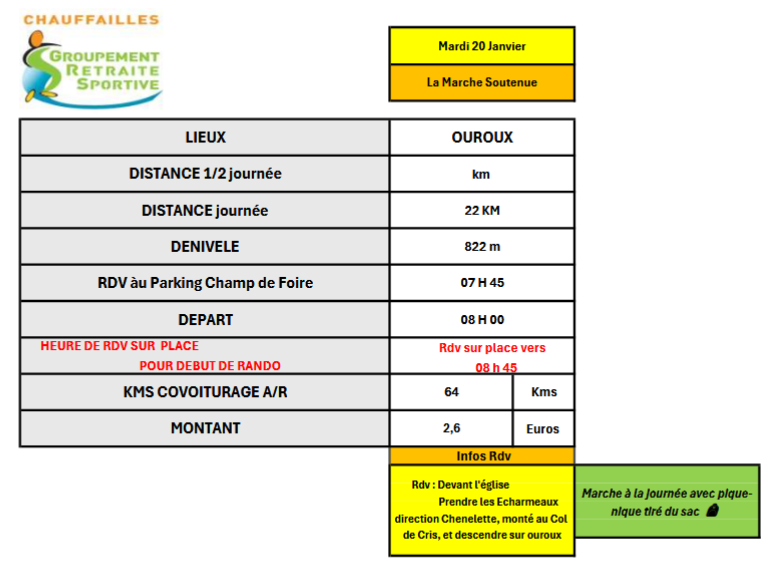 En cas de météo trop capricieuse, certaines sorties pourront être annulées, toujours dans un souci de sécurité pour tous nos valeureux marcheurs. 👣