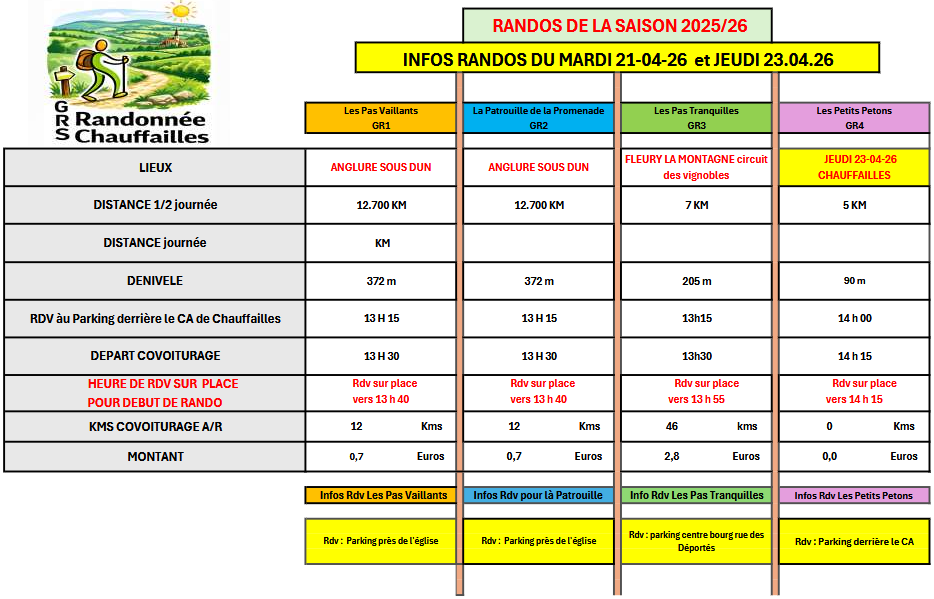 En cas de météo trop capricieuse, certaines sorties pourront être annulées, toujours dans un souci de sécurité pour tous nos valeureux marcheurs. 👣