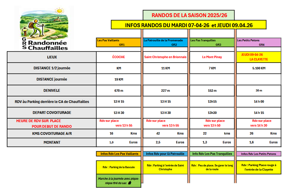 Les infos des évasions pédestres publiées sur le site ne sont pas gravées dans le granit ! Elles peuvent changer à tout moment selon la disponibilité des animateurs… ou l’humeur du ciel ! 🌦️